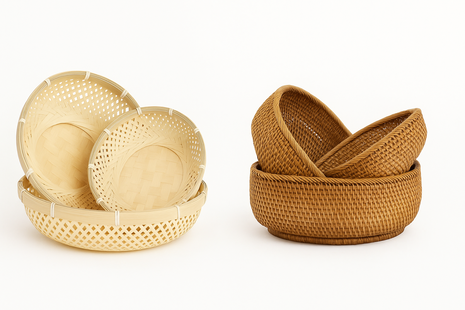 3er Set Runde Bambus Servierkörbe Naturgeflecht