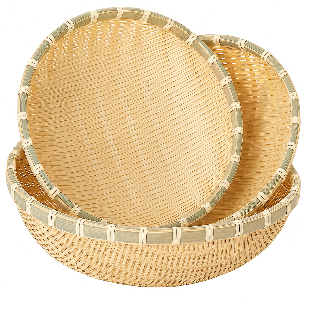 Diese Bambus-Servierkörbe bringen Natürlichkeit, Ordnung und Stil in Ihre Küche oder auf den Esstisch.