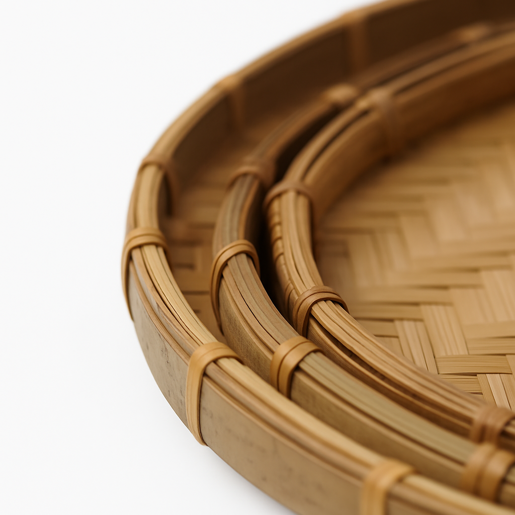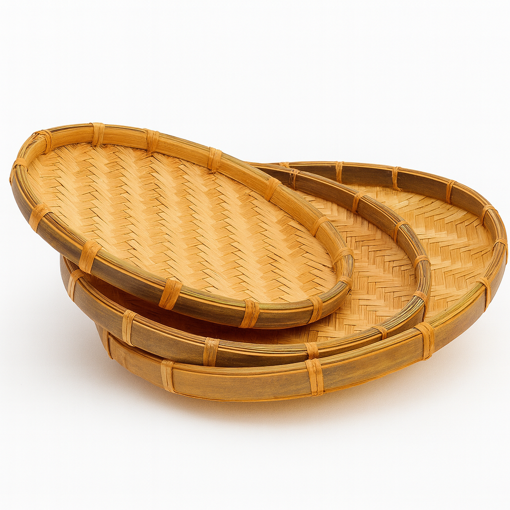 Dieses Set aus drei handgefertigten Bambus-Serviertabletts bringt Natürlichkeit und Funktionalität auf jeden Tisch. Die flachen, runden Tabletts werden aus nachhaltigem Bambus gefertigt und eignen sich ideal zum Servieren von Brot, Obst, Snacks oder Gebäck. Durch die feine Flechtstruktur und die warme Farbe wirkt jedes Stück authentisch und dekorativ. Die Körbe sind leicht, platzsparend stapelbar und einfach zu reinigen – perfekt für Küche, Esszimmer oder Garten. Ihre natürliche Oberfläche passt sowohl zu modernen als auch zu traditionellen Einrichtungsstilen.