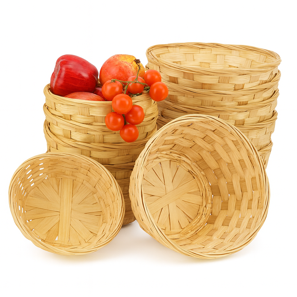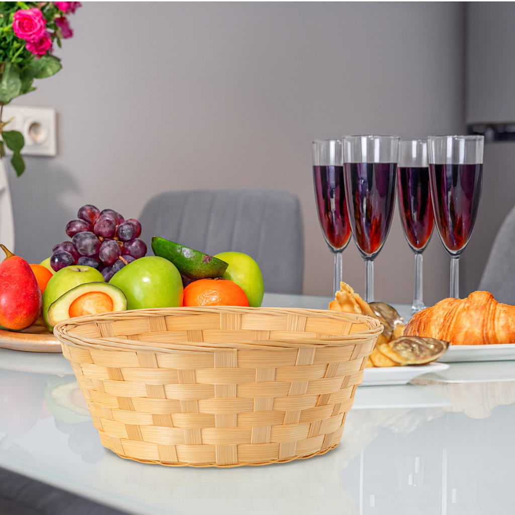 Gefertigt aus umweltfreundlichem, naturbelassenem Bambus, eignen sie sich ideal zum Servieren und Aufbewahren von Obst, Brot oder Snacks. Das schlichte Design mit feiner Flechtstruktur verleiht jedem Esstisch eine warme und natürliche Note. Die Körbe sind leicht, langlebig und vielseitig einsetzbar – perfekt für Küche, Esstisch oder Dekoration. Durch die atmungsaktive Struktur bleibt der Inhalt frisch und ansprechend präsentiert.